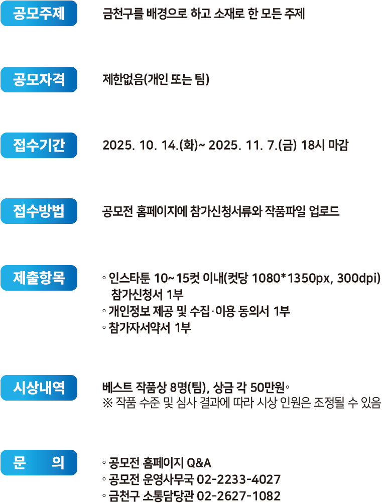 2025 금천구 인스타툰 공모전 운영사무국 / 문의전화 : 02-2233-4027