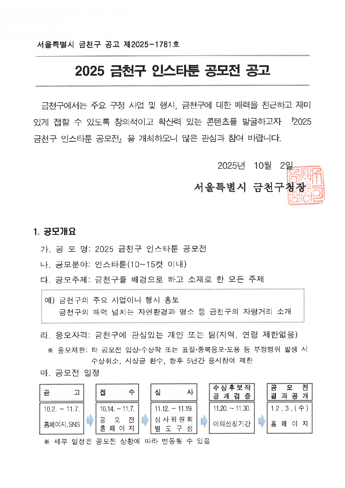 2025 금천구 인스타툰 공모전 운영사무국 / 문의전화 : 02-2233-4027